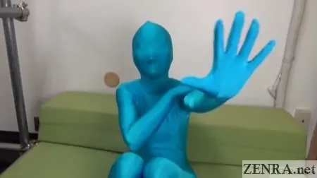 Now, not all ZENTAI play can be carried out outside--at least not easily and certainly not morally. There are other 'activities' that define the ZENTAI culture. We're talking about the more erotic side to being covered in form-fitting material while usually wearing nothing at all underneath. That's how you roll when you go ZENTAI--at least when you're a cute Japanese AV star taking part in an unorthodox photography club event.