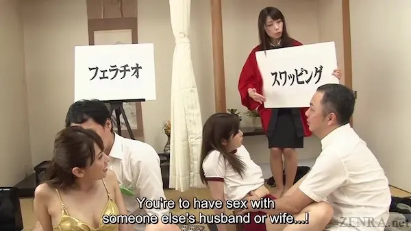 Couples therapy is no joke--unless it's done in a rather unusual setting involving four of them going head to head, having sex with each other and with strangers, with a easy on the eyes female host gradually upping the ante with 'challenges' that progress from tame hugging to full on creampies. This is far and away not a reality movie by any means and wearing that proudly on bared shoulders, we get two extra long challenge-themed encounters that push fidelity to its breaking point (and then some) in a way only JAV can really pull off.