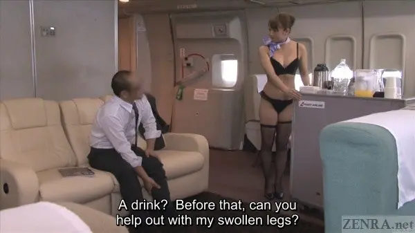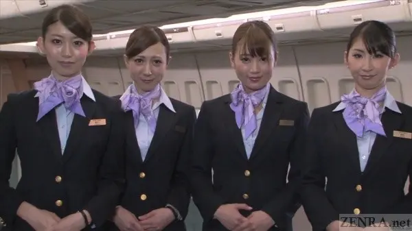 Fortunately, this is the real deal. OK, now the last scene starts to feel more like a vanilla flight attendant JAV movie aside from the great set piece, but otherwise, SENZ holds its own as from start to mostly finish; a new type of reality is erected where easy on the eyes cabin attendants in drastically decreasing states of undress cater to the needs of their customers. Up in the air over 30,000 feet? Time for 'pussy attend' service. Can't go to bed? 'Pussy attend' service. Want a meal? How about 'pussy attend' service. First class? 'Pussy attend' service before the plebs in steerage! They get theirs too, but it's sloppy seconds. Being a JAV, the end result of each encounter is obvious and gosh is it done well. I've always had a soft spot for SUMIRE KUROKAWA and she can be considered the 'lead' attendant here and nails it. But all four actresses do great jobs and could pass for the real thing. Special mention as well to MIKA KIZAKI. The director was aware of her great butt and flexibility and put it to great use.