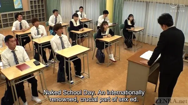 Every have that dream you were in school but totally naked? Everyone around you--classmates, teachers, that girl you have a crush on with the cute dimples that show when she smiles--is clothed. You: naked as a jaybird. For most of us, the dream ends there, but what if this concept was turned into a JAV movie? What if in some not well thought out way to reduce shame, the Japanese government decides that at least for certain students, once a week at least will transition to Naked in School day! Monday, chosen for ideal reasons (because who normally wants to go to school on that day?!) is where our adventure begins and what a journey it becomes!