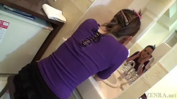 Although odd to write, the one time you'd think the trademark real creampie would be put aside for a facial, it would be in a movie about not wearing makeup, but as is tradition, the ending of this one is as real as it gets. We conclude with MINAMI AKIKAWA getting dressed, but just before leaving the hotel room, she shows that she has came prepared: big sunglasses and surely after stepping outside a medical mask to boot. Going outside without makeup requires extreme precaution when you're the hottest gyaru in town.