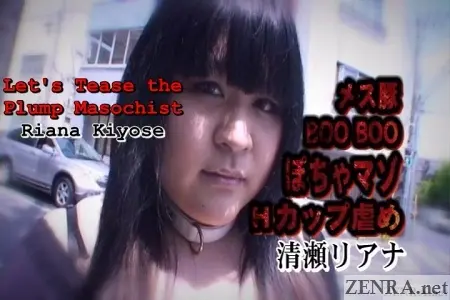 "RIANA KIYOSE is a highly masochistic whale of a woman at 115kg (254lb.) and standing an impressive 174cm (5'7”). She was raised rotten by parents who gave in to all her desires leading her to do nothing but sit around watch TV while eating almost nonstop. Watch as she is teased in ways that are a total affront to human decency such as nose hooks, enemas, 'relieving herself' outdoors, bondage with candles, body graffiti, anal invasions, and more. Watch as she somehow enjoys every bit of it!”
