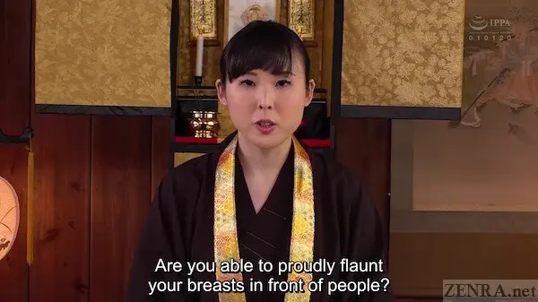The theme is simple and is more than just weirdness: as a way to push equality to the forefront, Japanese women need to come out of their shells. Being coy, demure, and shy are no good in the modern era! A method has been created combining tenets of traditional religious ceremony and nonstop nudity. After all, as our teacher notes in so many words: "What's shameful about nudity? You were born that way after all!"