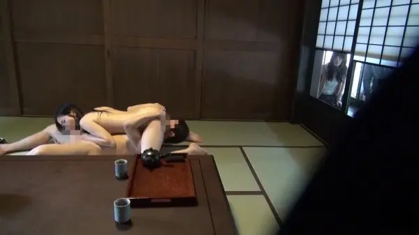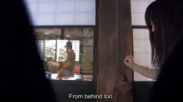 Making use of an extra large vacation house we may have seen in previous releases by them, we get ample footage from traditional tatami rooms, depressing western rooms found in many a Showa Era home, and excellent bath footage as well. With so much space and a picturesque outdoor onsen at their disposal, it's almost a bummer each of the two encounters finishes in such a drab space. Thankfully, that great Japanese style tea room is used during the first brazen sex encounter where our 'fake' couple goes at it out in the open in order for the real wife to watch them in the act. The first grouping in particular not only uses it well, but features some cinematic-level framing to boot.