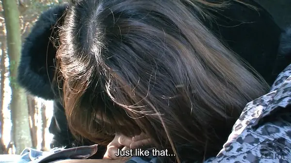 Working on so many JAV movies over the years, it's kind of interesting to notice trends: one is when we have the "meet an amateur outside before we go to X", it often seems to start with the actor and the performer doing the whole "oh, it's been awhile" routine. But has it? Have they shot before? Or is the name of the game them already having a fling in the past and this time cutting through the foreplay, so to speak, in order to jump right into a scenario that normally two forbidden lovebirds would dare not try...like sex outside in a forest (well, technically making use of a van in said location, but who's counting?).